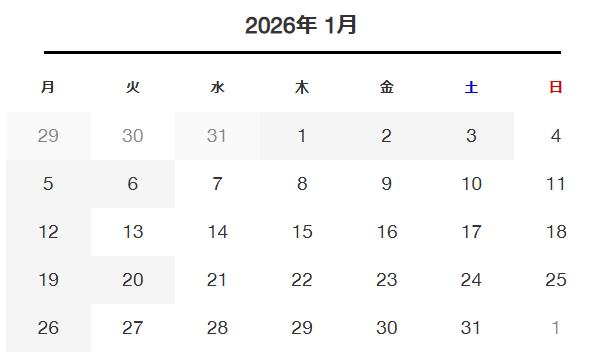 泉区南光台の理容室 髪びより2026年1月の営業カレンダー